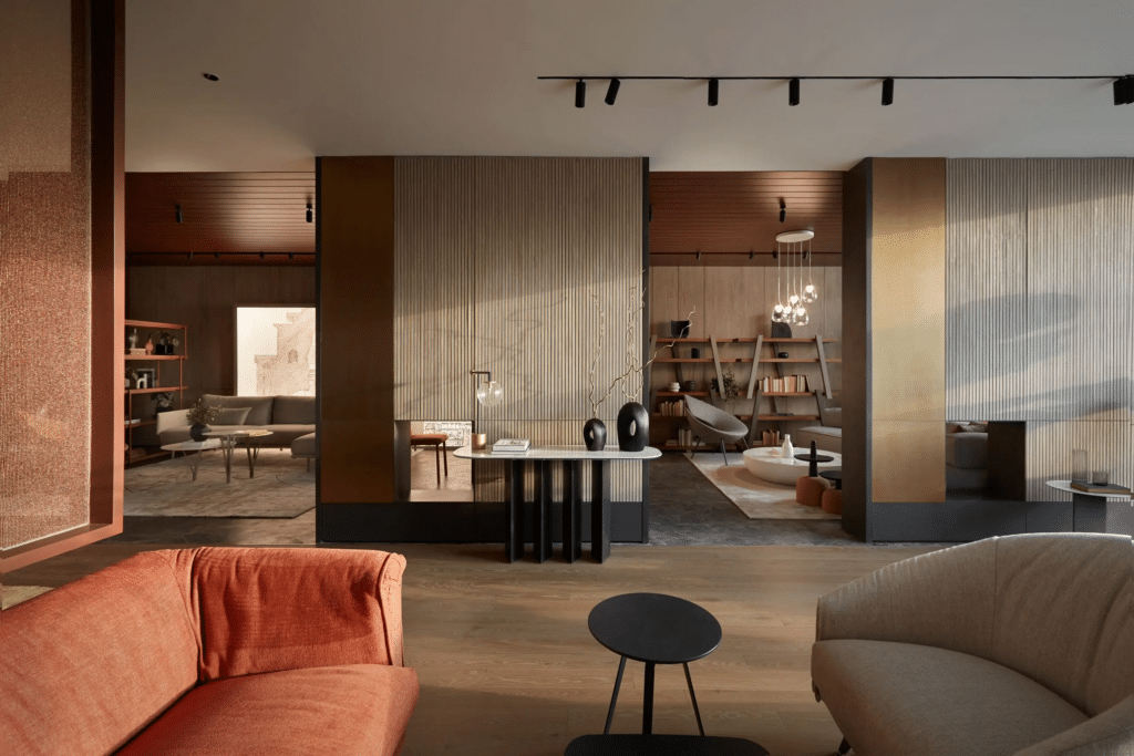 Les grandes maisons — Cassina, Vitra, Knoll, Flexform, Moroso, Collection Particulière — poursuivent ce dialogue subtil entre héritage moderniste et création contemporaine. Le mobilier n’est plus un objet, mais une expérience quotidienne.
