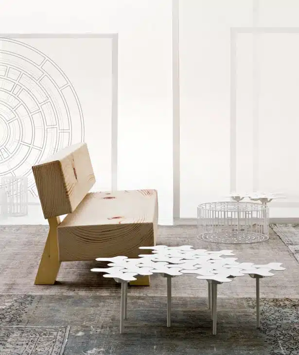Le designer Philippe Bestenheider signe la table basse Nanook pour Moroso. Le designer explore ici le passage du dessin plat au volume. La structure s’inspire de la géométrie d’un flocon de neige.